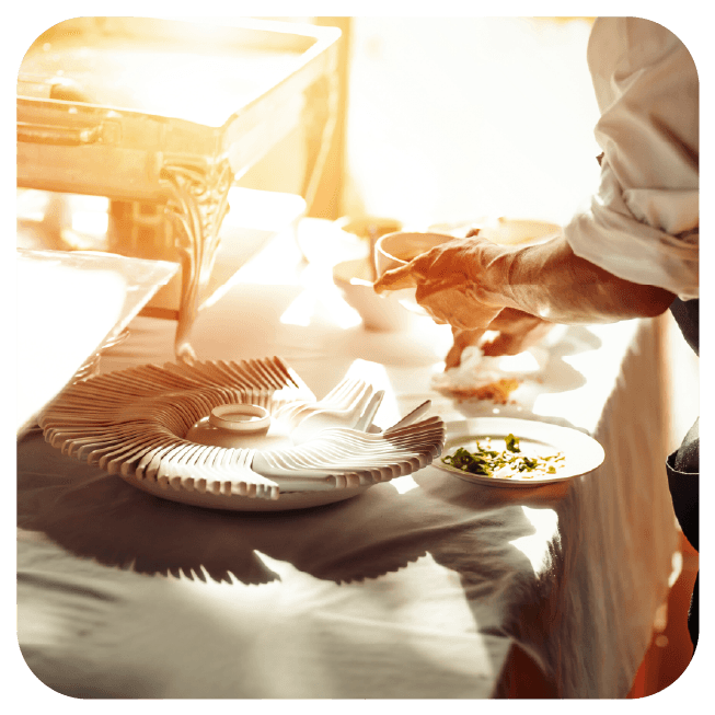Avrupa standartlarına uygun gastronom küvetler ve 4 saat ısı korumalı, antibakteriyel termoport taşıma, personelli dağıtım veya kapıdan teslim şeklinde hizmet
