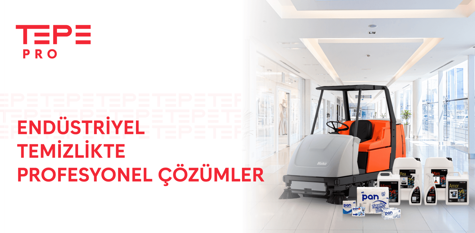 Otel, hastane, okul, restoran, catering, fabrika, site yönetimi, iş merkezi ve AVM gibi geniş ölçekli tesisler için endüstriyel temizlik ürünleri sunuyoruz. PANDORA ve PAN markalarımızın yanı sıra güçlü sektör markalarıyla iş birliği yaparak geniş bir ürün portföyü sağlıyoruz.